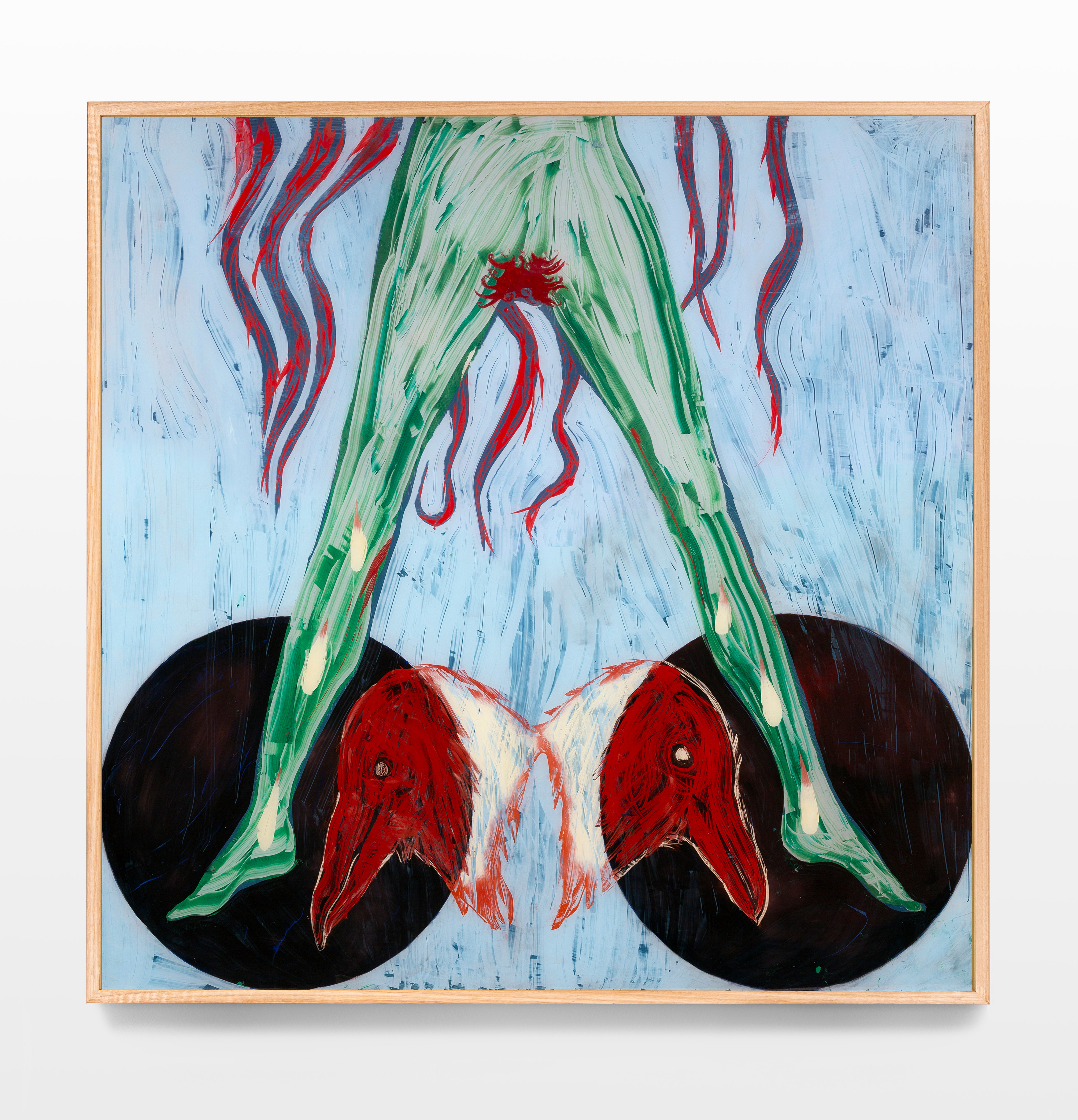 oil on toughened glass, reclaimed timber frame (Agathis robusta)